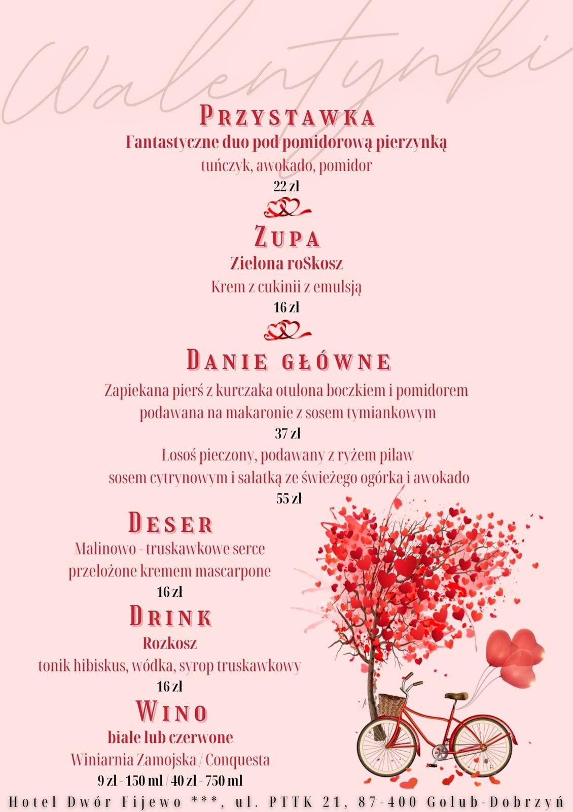 Od 11 lutego br. wszystkich zakochanych i nie tylko zapraszamy na specjalne menu przygotowane z okazji dnia św. Walentego.